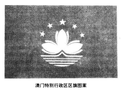 澳門特別行政區的區旗是繪有五星、蓮花、大橋、海水圖案的綠色旗幟。