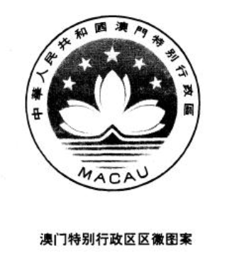 澳門特別行政區的區徽,中間是五星、蓮花、大橋、海水,周圍寫有“中華人民共和國澳門特別行政區和葡文“澳門”。