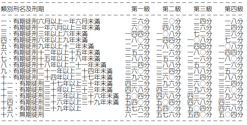﹝2﹞ 前項表列責任分數,於少年受刑人減少三分之一計算。